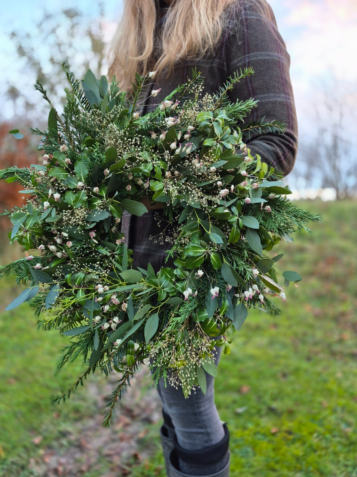 My large wreaths are perfect as a seasonal statement piece for your door, but also used for tribute flowers for funerals